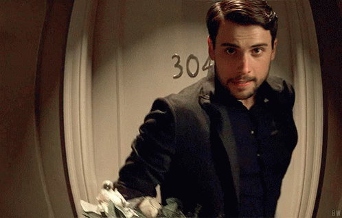 Jack Falahee as Connor Walsh, holding flowers at a door marked 304.