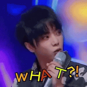 Hua Chenyu, also known as Hua Hua, reacts with a surprised 'WHAT?!' while holding a microphone on stage.