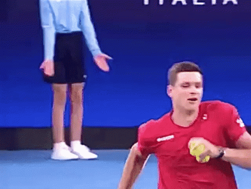 Hubert Hurkacz celebrates a point by energetically jumping over the tennis net during a match.
