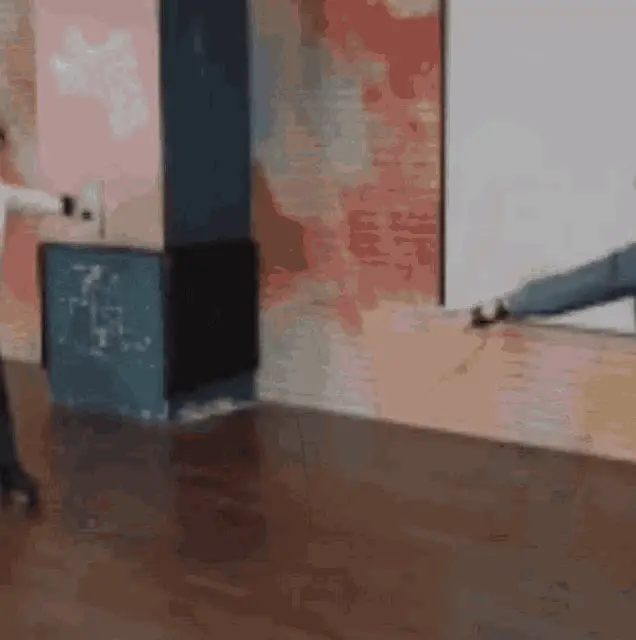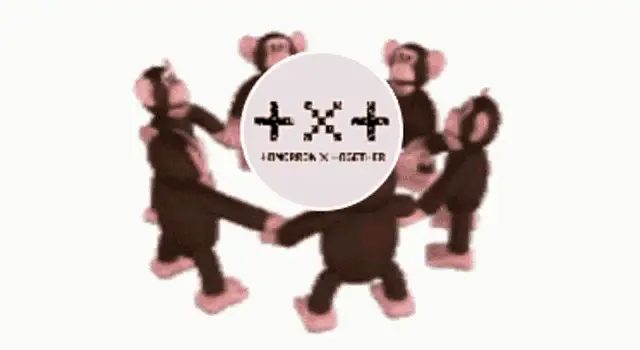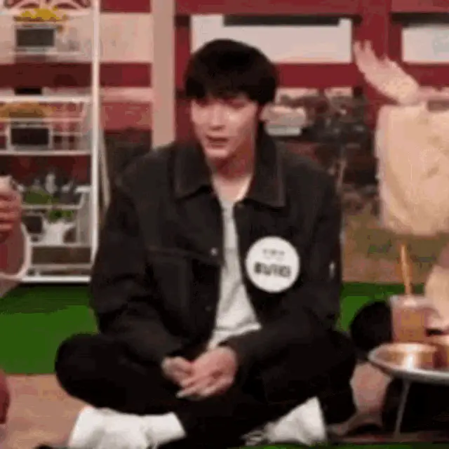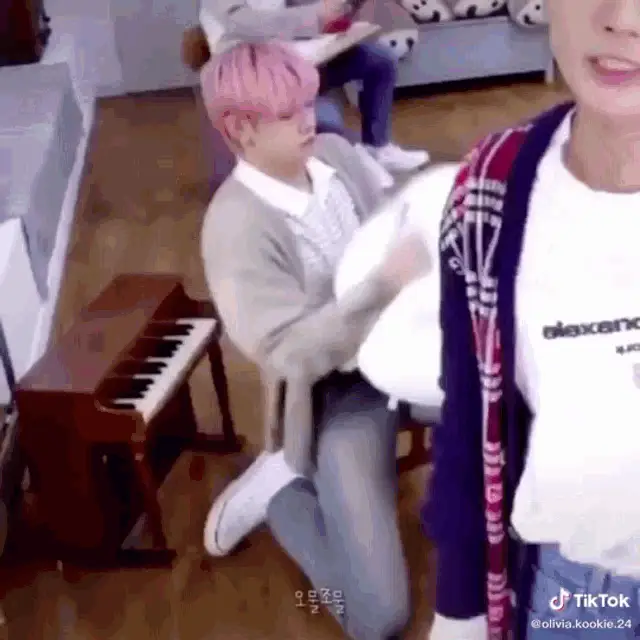 Hueningkai from TXT smiling and moving playfully on an escalator, creating a fun meme moment.