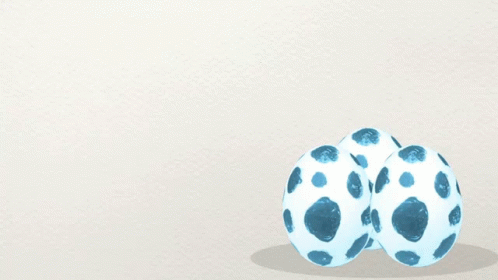 A claymation dinosaur head from 'Curiosamente' looks at three spotted dinosaur eggs in this animated clip.