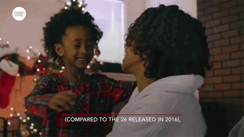 A mother and daughter share a warm hug in front of a festive Christmas tree, celebrating family love.
