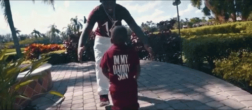 Kodak Black shares a warm embrace with his son, who wears a shirt proudly stating 'I'M MY DADDY SON'.