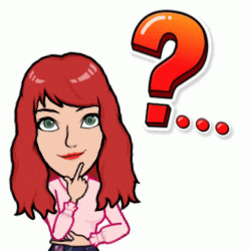 An animated girl with red hair and green eyes ponders, with a large red question mark appearing above her head.