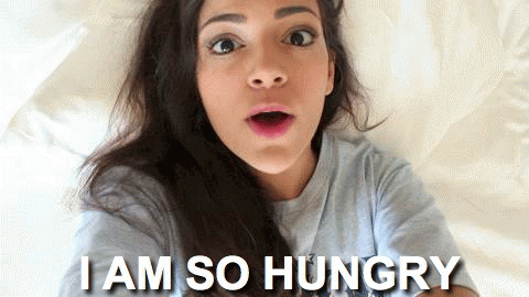 Bethany Mota expresses her hunger with a surprised look on her face.