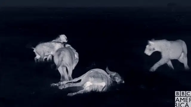 Emma, portrayed by Lily Rabe, holds a rifle and umbrella, cautiously moving through a misty forest.