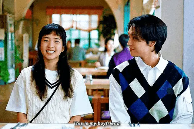 Hwang In Yeop as Han Seojun from True Beauty, with cute heart stickers on his cheeks.