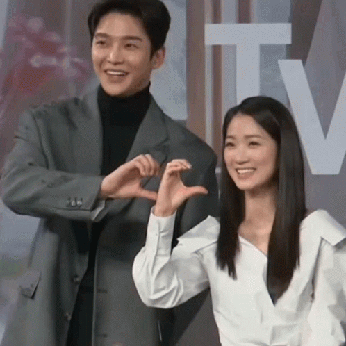 Kim Hye-yoon and Rowoon from Extraordinary You making a heart sign together.