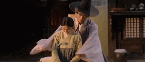Kim Hyeyoon and Ok Taecyeon share a tender, romantic hug in traditional Korean attire from their drama.