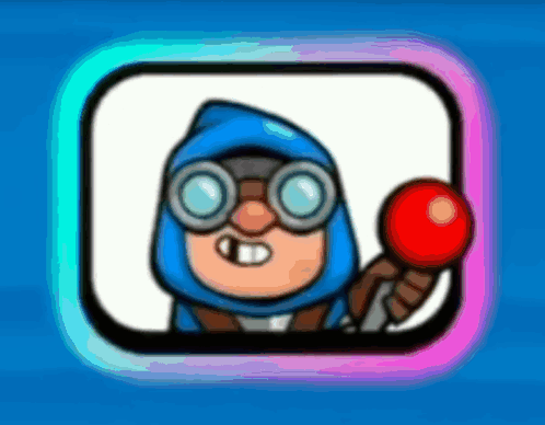Clash Royale character Hypnos Cr, a wizard with goggles, holds a red ball and makes various expressions.