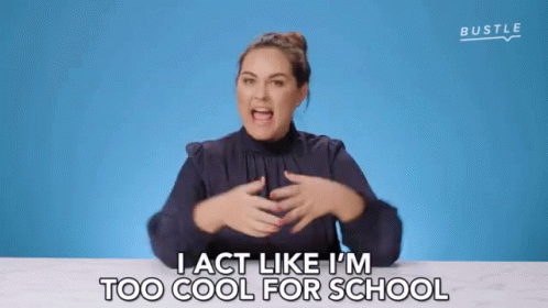 A woman from Bustle, possibly Taylor, explains how she acts 'too cool for school'.
