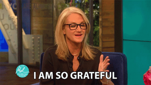 Mel Robbins expresses gratitude, saying "I AM SO GRATEFUL" on The Mel Robbins Show.