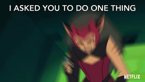 Catra from She-Ra and the Princesses of Power reacts with frustration and surprise to a simple request.