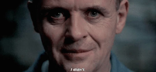 Anthony Hopkins as Hannibal Lecter delivers the iconic line 'I didn't.' from Silence of the Lambs.