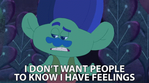 Branch from Trolls expresses his reluctance to show emotions, stating "I don't want people to know I have feelings."