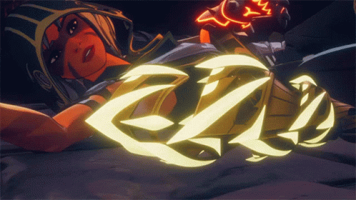 An animated character from Spellbreak demonstrates her powerful glowing gauntlets, embodying 'I Have The Power'.