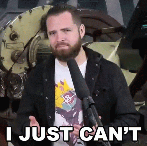 Bricky expresses frustration, stating 'I just can't' while holding a microphone and gesturing passionately.