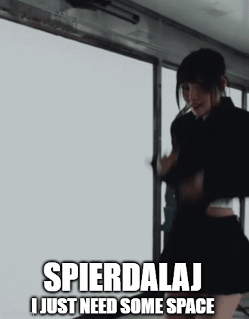 A woman dances with the text 'Spierdalaj I Just Need Some Space' overlaid, referencing Stan Loona.