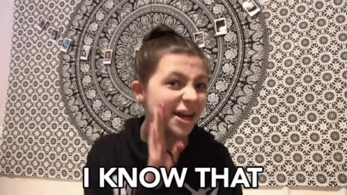 Bethany Grieve makes a funny, expressive face while saying 'I Know That' directly to the camera.