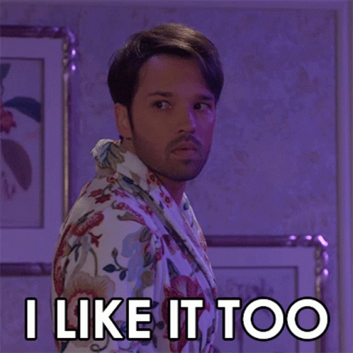 Freddie Benson (Nathan Kress) in a floral robe expresses his approval by saying 'I Like It Too'.