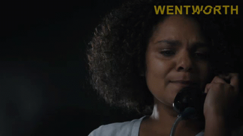 Ruby Mitchell from Wentworth cries on the phone, saying 'I love you and I'm sorry' in an emotional scene.