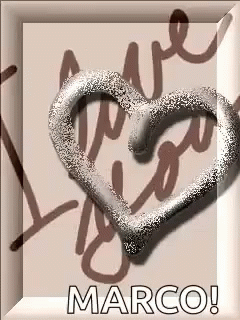 A sparkling glittery heart displaying the affectionate message 'I Love You Marco' with animated shimmer.