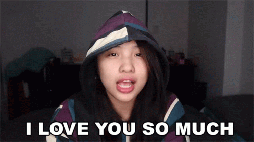 Isseymiyake Parto expresses affection, saying 'I Love You So Much' directly to the camera.