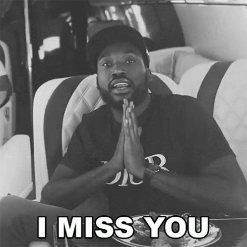 Meek Mill in a black and white image, hands clasped in prayer, with 'I Miss You' text overlay.