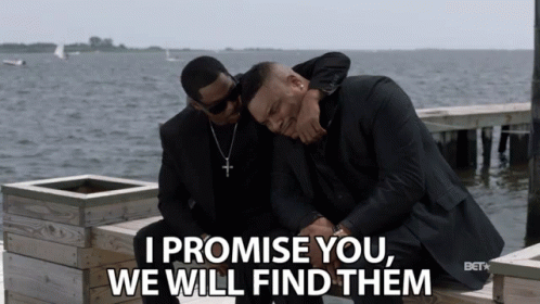 Sean Ringgold is comforted by another man on a dock, with the promise "I Promise You, We Will Find Them."
