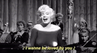 Marilyn Monroe performs 'I Wanna Be Loved By You' in a classic black and white film scene.