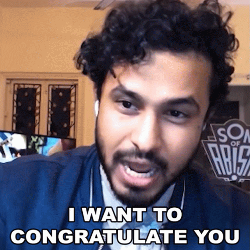 Comedian Abish Mathew delivers a congratulatory message, with his show 'Son Of Abish' visible in the background.