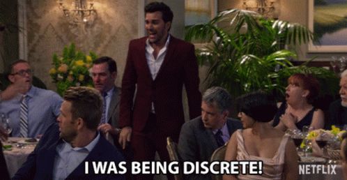 Juan Pablo Di Pace as Fernando Fuller from Fuller House exclaims, 'I WAS BEING DISCRETE!' at a formal event.