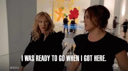 Lieutenant Olivia Benson (Mariska Hargitay) and Detective Amanda Rollins (Kelli Giddish) from SVU, discussing being ready.