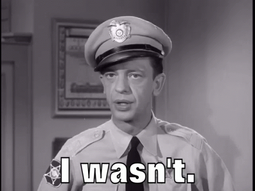 Barney Fife, as Deputy Sheriff, looks miffed with the caption 'I wasn't.' from The Andy Griffith Show.