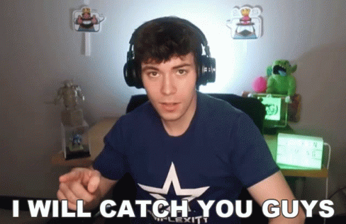 Man in headphones points at the camera, saying "I will catch you guys" from Vulkan Gaming.