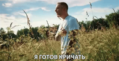 Russian singer Egor Creed in a field, with the caption 'I Am Ready To Scream' from his song.