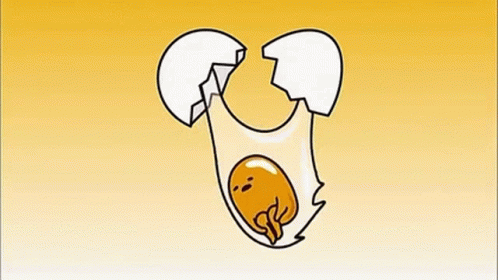A cartoon broken egg with the character Gudetama inside, looking lazy and unmotivated.