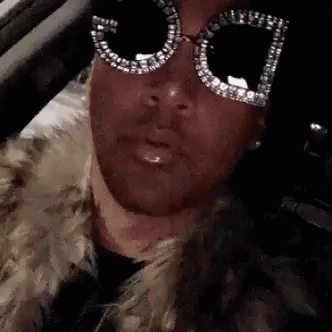 Iamcchico Cchico wearing sparkling Dolce & Gabbana sunglasses and a stylish fur-trimmed coat.