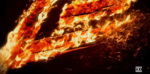 a picture of a fire with hk written on the bottom