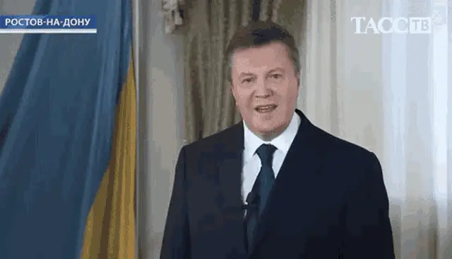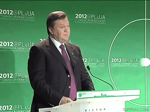 Viktor Yanukovych speaking at the 7th Davos Ukrainian Lunch, standing at a podium.