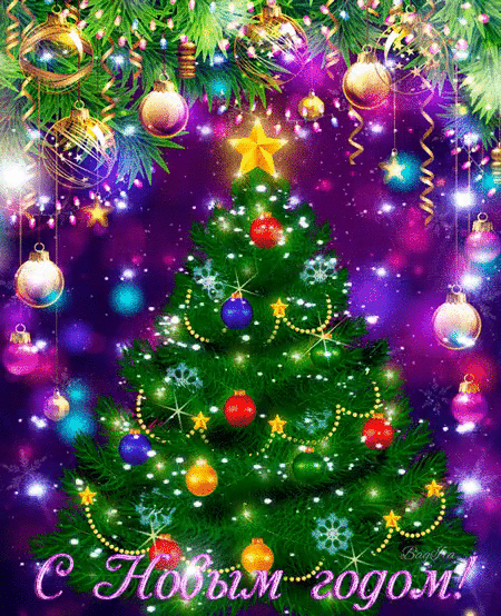 Яркая, мерцающая открытка на новый год