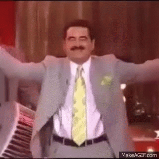 Ibrahim Tatlises performs an energetic Halay dance on stage, arms outstretched and smiling.