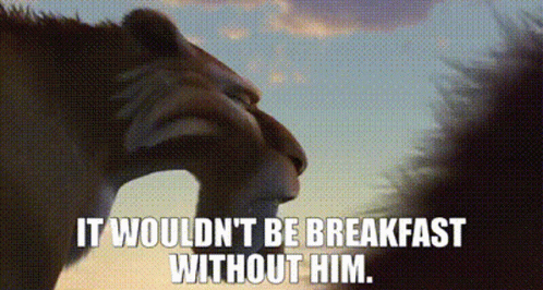 Diego, the saber-toothed tiger from Ice Age, with the iconic meme caption 'It wouldn't be breakfast without him.'