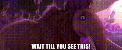 Ellie from Ice Age looks surprised with the caption 'WAIT TILL YOU SEE THIS!' on screen.