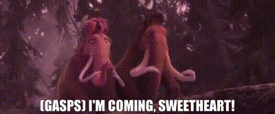 Manny from Ice Age gasps and says 'I'm coming, sweetheart!' in a dramatic moment.