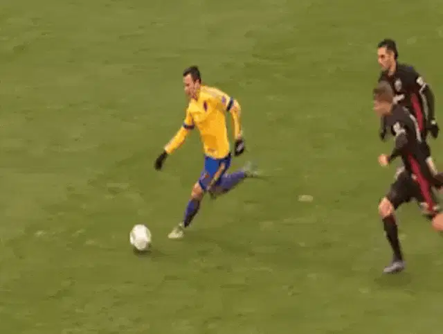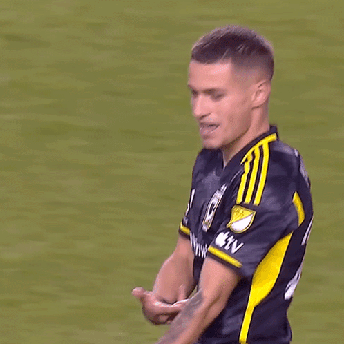 Alexandru Matan celebrates a goal with the 'Ice In My Veins' gesture during an MLS match.