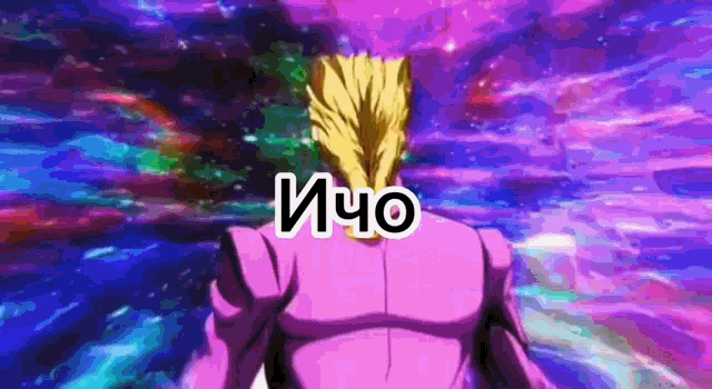 Animated character Icho Giorno from Jojo's Bizarre Adventure in a pink suit against a vibrant background.