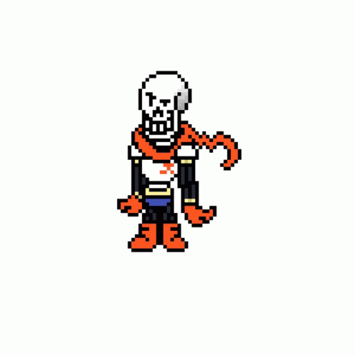 Papyrus, the skeleton from Undertale, stands idle with his red scarf blowing in this pixel art animation.