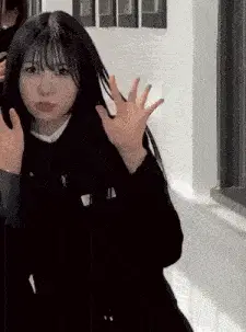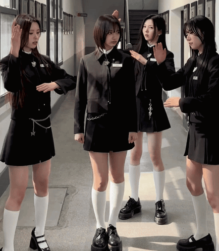 a group of girls are standing in a hallway and one of them has a name tag that says ' a ' on it