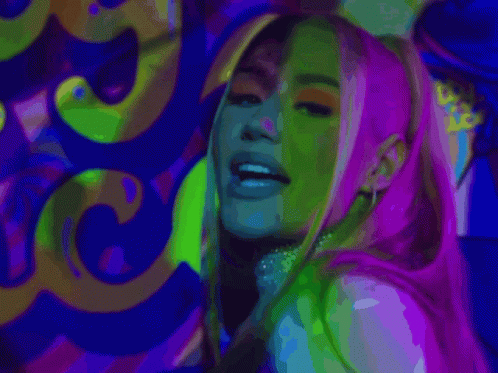 Iggy Azalea performs with vibrant colors and dynamic lighting effects.